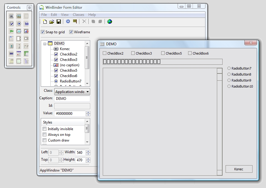 BCP soubor "demo.bcp": Projekt s využitím GUI z WinBinderu