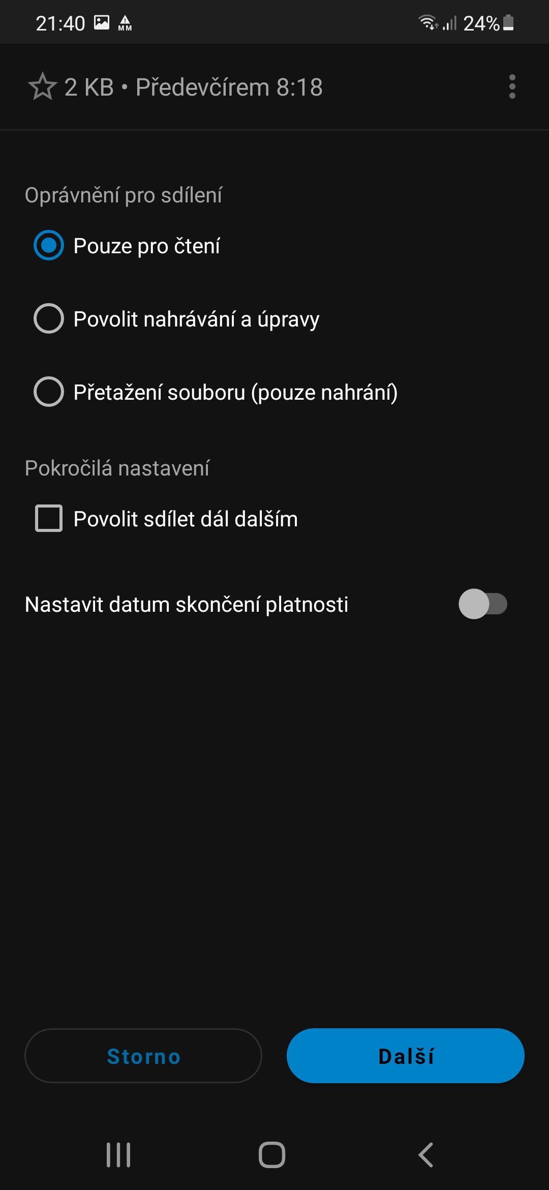 Proces sdílení je upraven tak, aby umožňoval další úpravu možností. Nově můžete používat adresáře, do kterých lze soubory pouze nahrávat nebo na adresáři omezit možnost přesdílení. Při vytváření sdíleného adresáře můžete vyplnit zprávu pro uživatele, která mu přijde v informační zprávě.