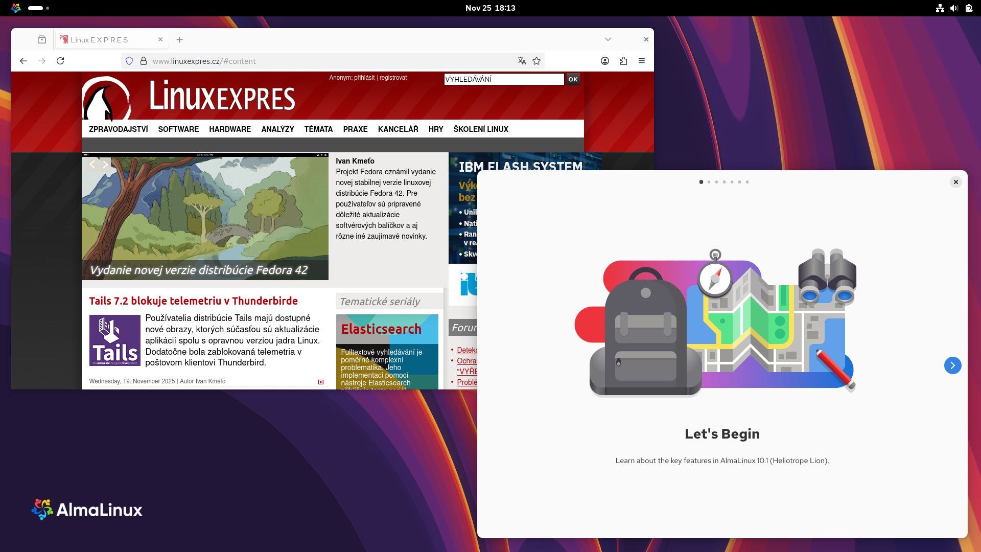 Správa ku vydaniu stabilnej verzie distribúcie AlmaLinux 10.1, ktorá dostala kódové meno Heliotrope Lion, bola uverejnená na stránke almalinux.org spolu s ďalšími informáciami a odkazmi na stiahnutie inštalačných obrazov pre všetky podporované procesorové architektúry.