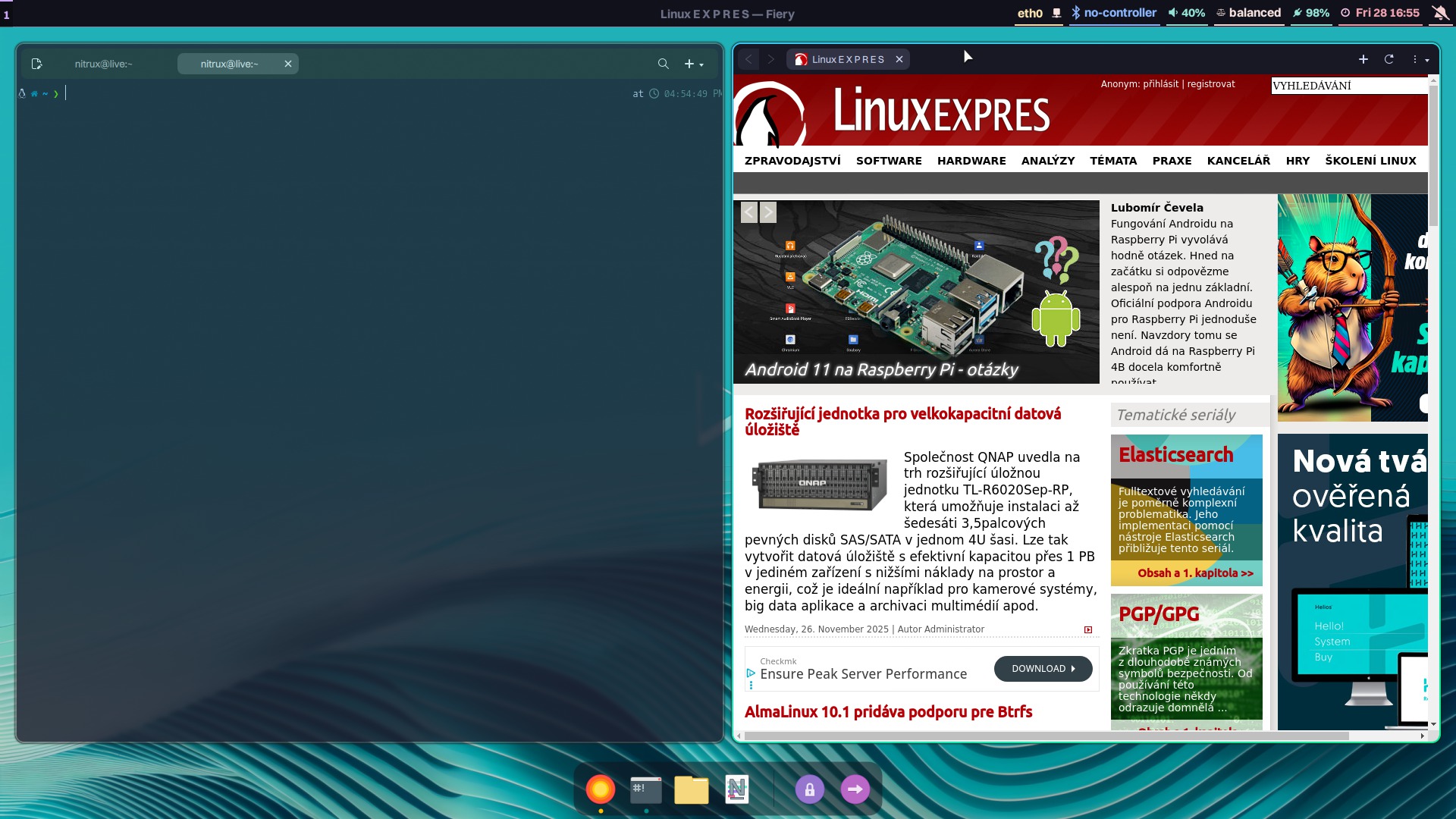 Dodatočne pribudli aj rôzne iné aktualizácie, napríklad Git 2.51.0, Python 3.13.7, OpenSSL 3.5.3, Pipewire 1.4.8, Flatpak 1.16.1, XWayland 24.1.8 či Bluez 5.84. Po novom by mali mať používatelia dostupný nástroj Ark z prostredia KDE alebo nástroj Grimshot na tvorbu snímok obrazovky. Naopak odstránené boli balíčky pre AMD ROCm spolu so zastaranými hardvérovými ovládačmi AMDVLK a opustená bola tiež podpora pre Hyper-V, keďže podľa slov vývojárov už Nitrux nemá byť určený na virtualizáciu systémov.