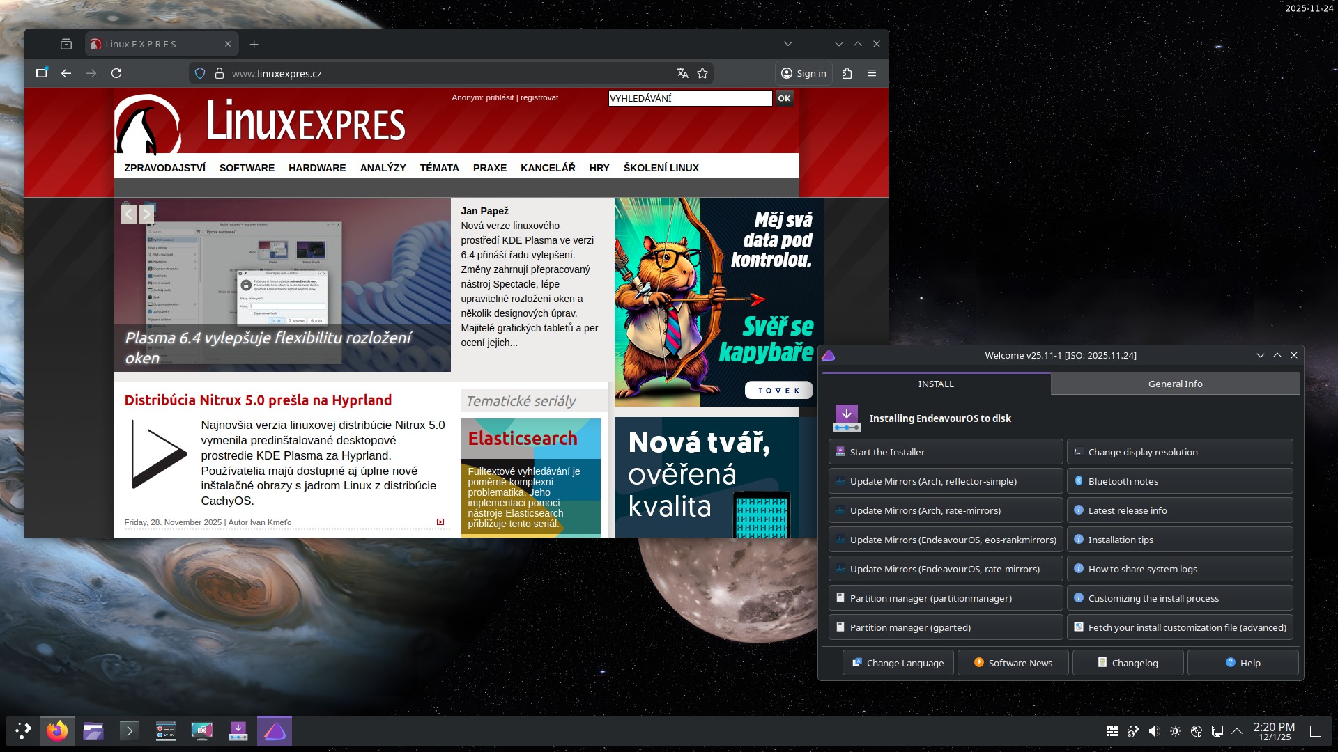 Súčasťou týchto nových obrazov distribúcie EndeavourOS je napríklad jadro Linux 6.17.8, knižnica Mesa 25.2.7 alebo ovládače pre grafické karty NVIDIA 580.105.08. Dodatočne by mal EndeavourOS automaticky rozpoznať model grafickej karty už v priebehu štartu systému a následne tiež zvoliť vhodný ovládač. Podľa slov vývojárov by sa vďaka tejto novinke mala výrazne zlepšiť podpora grafických kariet NVIDIA. Do zoznamu aktualizácií sa dostal aj webový prehliadač Mozilla Firefox 145.0.1 a inštalátor systému Calamares 25.11.1.9. Nakoniec vývojári nahradili virtuálnu klávesnicu v prostredí KDE Plasma a odstránili nástroj GNOME Screenshot spolu s nestabilným ovládačom broadcom-wl.