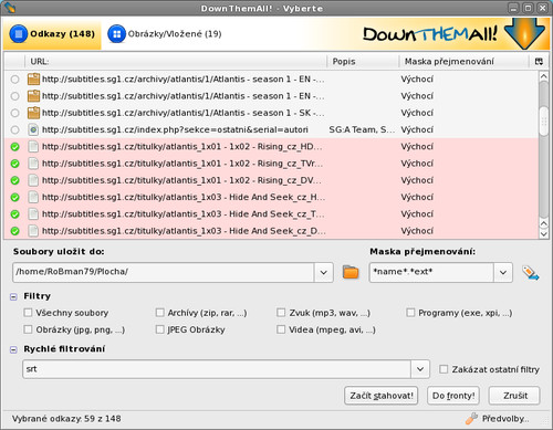 DownThemAll: Hromadně stahujeme titulky pomocí filtru „srt“