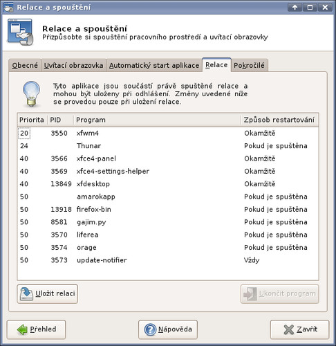 Správa relací všechny formáty | spustit slideshow < předchozí | následující > Správa relací < předchozí | následující > Album: Xfce 4.6
