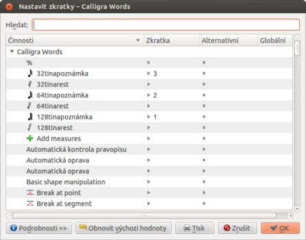 Nastavit si pak můžete také Nástrojové lišty a Klávesové zkratky. Jinak Calligra Words žádná příliš podrobná nastavení nenabízí, což na druhou stranu není špatně. Kolik uživatelů to potřebuje?