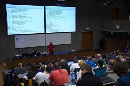 Přednášky na konferenci probíhaly v angličtině, což se dá vzhledem k mezinárodní účasti pochopit. A byla jich opravdu spousta – současně při započítání workshopů běželo až 8 (!!!) přednášek najednou. Kromě hlavního programu pak mohli návštěvníci hlasovat i o tzv. Lightning talks, což jsou cca pěti- až desetiminutové minipřednášky, které probíhaly vždy večer po skončení programu.