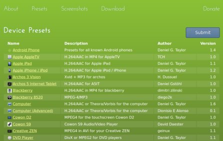 Arista od instalace obsahuje základní sadu takzvaných presetů, tedy připravených nastavení pro výstupní formát videa. Pokud tedy převádíte video, nemusíte se zajímat o konkrétní detaily jako kodeky a jejich nastavení, prostě stačí sáhnout po vyhovujícím presetu. Pokud vám jejich základní sada nebude stačit, na webu programu jich najdete o něco víc, celkem jich je k dispozici něco přes čtyřicet, ale uživatelé mohou přidávat další. Adresu webového repozitáře presetů si nemusíte nikam ukládat, dostanete se na ni přímo z Aristy pomocí Soubor | Get New Presets...