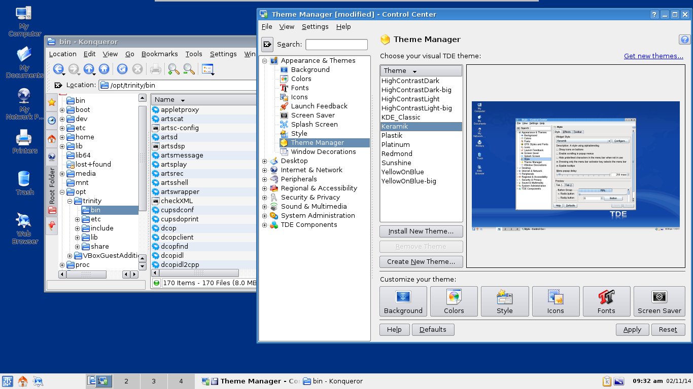 Aplikácie zdieľa s KDE 3 a zoznam všetkých dostupných aplikácií pre toto prostredie nájdete na stránkach TDE. Trinity je inštalovateľné na veľké množstvo linuxových distribúcií, ale je možné ho prevádzkovať napríklad aj na FreeBSD. Hardvérová náročnosť tohto prostredia nieje ani z ďaleka taká vysoká ako pri novom KDE Plasma 5, a je tak vhodné aj pre staršie alebo nevýkonné PC, ale aj pre každého, kto má rád „old school“ vzhľadu KDE.