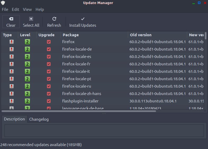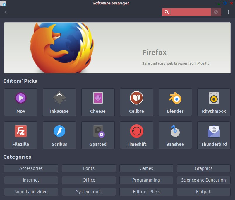 Základné softvérové vybavenie je totožné s už spomínaným Ubuntu 18.04 LTS. Predsa však uvediem Kernel 4.15.0-33, Nemo 3.6.5; dostupné sú i komerčné ovládače, VLC 3.0.3. Firefox 61.0.1 (po upgrade), Sakura, Samba (4.7.6). A to je naozaj všetko, pretože „Menej je viac“.